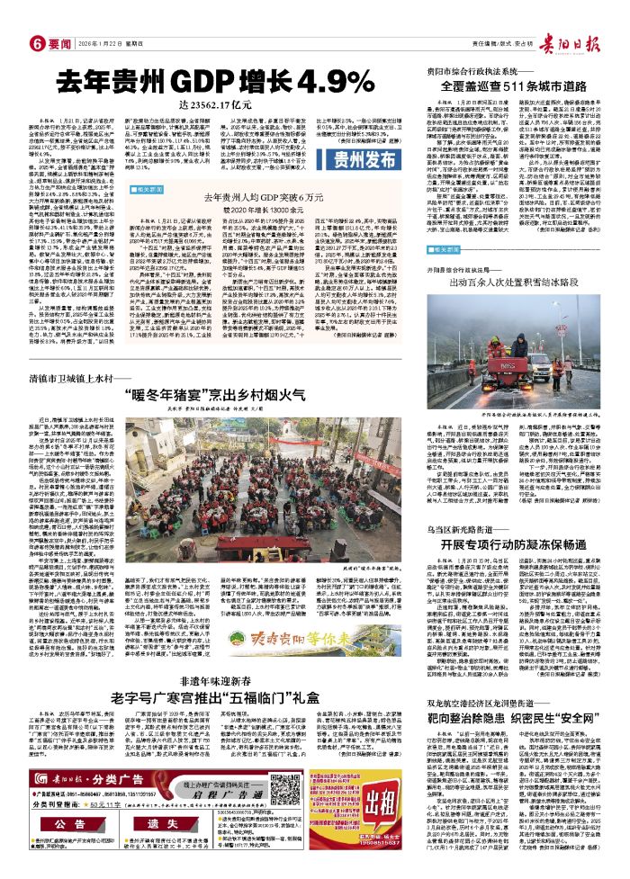 本报讯 1月20日夜间至21日凌晨,贵阳市遭遇低温降雨天气,部分城市道路、桥梁出现凝冻迹象。市综合行政执法局迅速启动应急响应机制,市、区两级部门连夜开展抗凝保畅工作,保障城市道路畅通与市民出