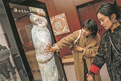 本次大展专门为石塔打造了OLED(有机发光二极管)交互式透明展柜,透明玻璃罩上同步浮现出石塔的电子影像。通过这种全新展示手段,观众可以360度无死角观看沙山石塔的各个细节,还能伸手触摸影像,参与“拼搭石塔”互动游戏,在趣味操作中深入了解石塔的构造细节。
