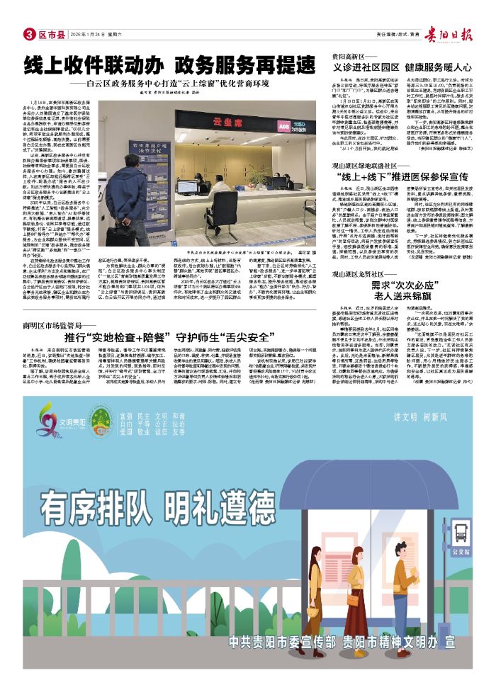 本报讯 连日来,贵阳高新区组织多场义诊活动,将医疗服务延伸至“家门口”和“厂门口”,为辖区群众送去健康“礼包”。 1月19日至1月21日,高新区在观山街道双创社区党群服务中心开展为期3