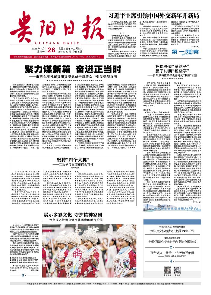 本报评论员 从“三个大抓”到“四个大抓”,释放出持续激发全社会内生动力和创新活力的鲜明信号。贵阳贵安各级各部门要切实把思想和行动统一到市两会部署要求上来,坚定不移大抓产业、大抓项目、大抓
