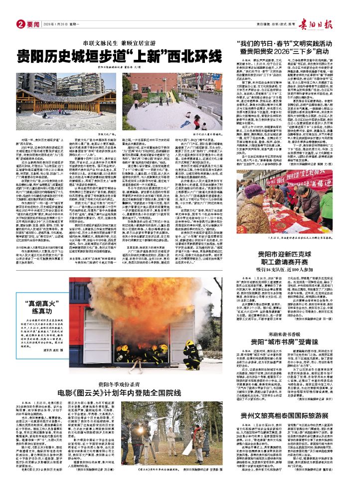 本报讯 鼓乐声声迎新春,文化惠民暖乡村。1月25日,位于白云区的贵阳共享农创城里鼓乐喧天、人声鼎沸,“我们的节日·春节”文明实践活动暨贵阳贵安2026“三下乡”启动仪式在此举行。 据了