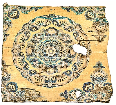 (唐)黄地团花纹锦。资料图片