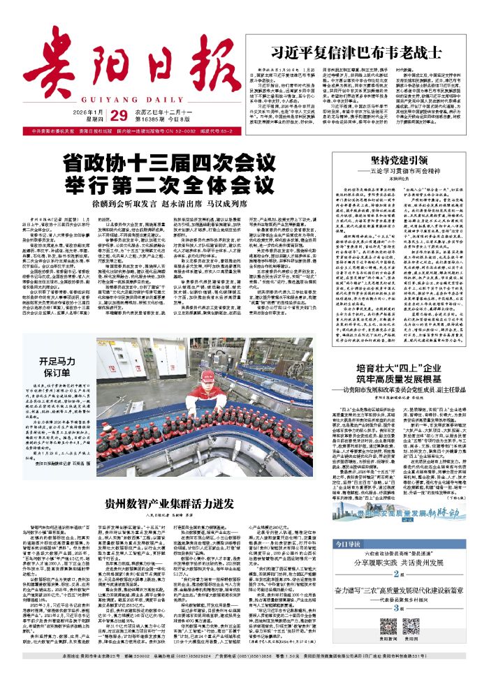 “牢记习近平总书记殷殷嘱托,贵州要深入贯彻落实党的二十届四中全会精神,因地制宜发展新质生产力,推动数字经济做强做优,引领支撑‘数智贵州’建设,奋力实现‘十五五’良好开局。”贵州省委书记徐麟表示。