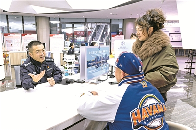 图为在重庆市公安局出入境管理局移民事务服务中心,民警为外籍人员解答相关永居政策(1月27日摄)。