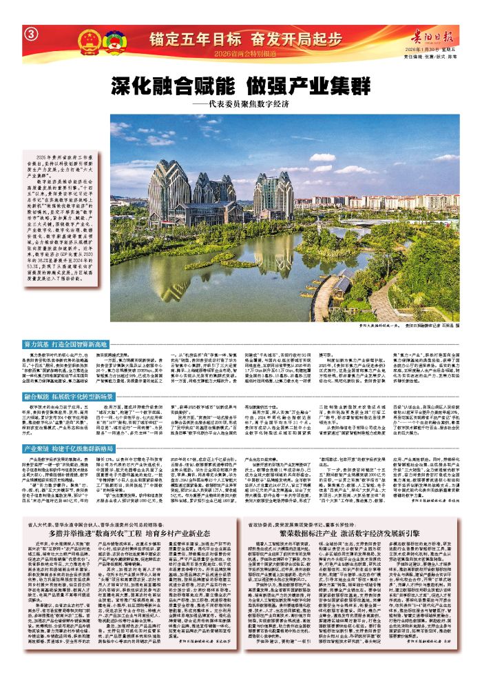 2026年贵州省政府工作报告提出,坚持以科技创新引领新质生产力发展,全力打造“六大产业集群”。 数字经济是推动经济社会高质量发展的重要引擎。“十四五”以来,贵阳贵安牢记习近平总书记“在实