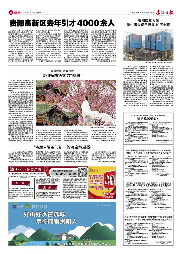 本报讯 记者1月28日从贵阳高新区获悉,2025年全区聚焦“引、育、用、留”关键环节,系统推动人才汇聚,全年推动引进包括300名高层次人才在内的各类人才4000余人,其中包括制造业产业人才2
