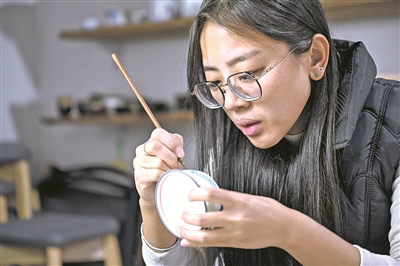 给瓷器描绘图案。
