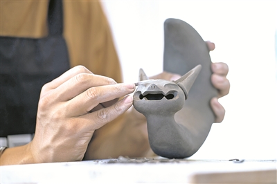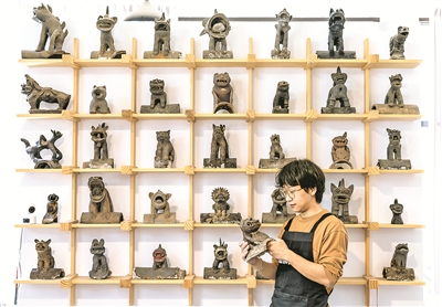 揉陶筑首,搓土成身。在云南昆明市古滇路转角的“心房瓦猫博物馆”内,张航伏案而坐,翻动着指尖刻刀,在陶土上勾勒出瓦猫夸张的神态。