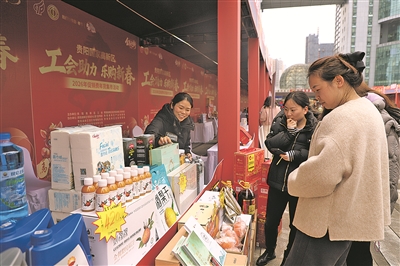 贵阳高新区职工在“工会助力 乐购新春”促消费活动中选购商品。