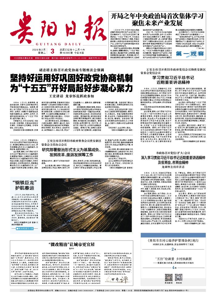 本报讯 2月2日,市委副书记、市长王宏主持召开贵阳市政府常务会议、贵安新区管委会主任办公会议,研究部署整治形式主义为基层减负、发展改革、能源发展等工作。 会议强调,要深入学习贯彻习近平