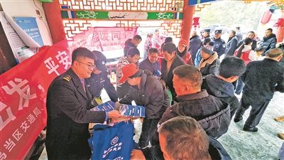 “大家要记牢,铁路附近500米范围内不能放风筝、飞无人机,也不能向列车、铁路扔石块、木块等物品……”活动现场,工作人员向王岗村、马头村、长坡村等村寨的村干部、网格员以及村民代表宣传宣讲道路安全知识。此次爱路护路进乡村活动,是乌当区扎实推进春运安全保障工作的重要举措。活动围绕“平安春运,温暖同行”主题,通过身边典型案例剖析,用通俗易懂的语言,向群众普及铁路有关安全知识、法律法规,进一步增强铁路沿线群众道路安全意识和法治观念,切实筑牢铁路运输安全防线,积极营造“人人知路、人人爱路、人人护路”的浓厚社会氛围,共创平安春运。