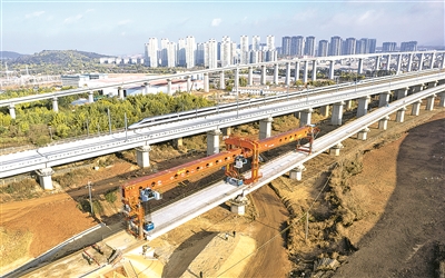 2月3日上午,在位于云南省昆明市呈贡区的渝昆高铁施工现场,随着最后一榀箱梁精准落位,渝昆高铁全线桥梁建设全部完成,为后续铺轨及站后工程施工奠定了坚实基础,标志着渝昆高铁建设进入全面冲刺阶段。