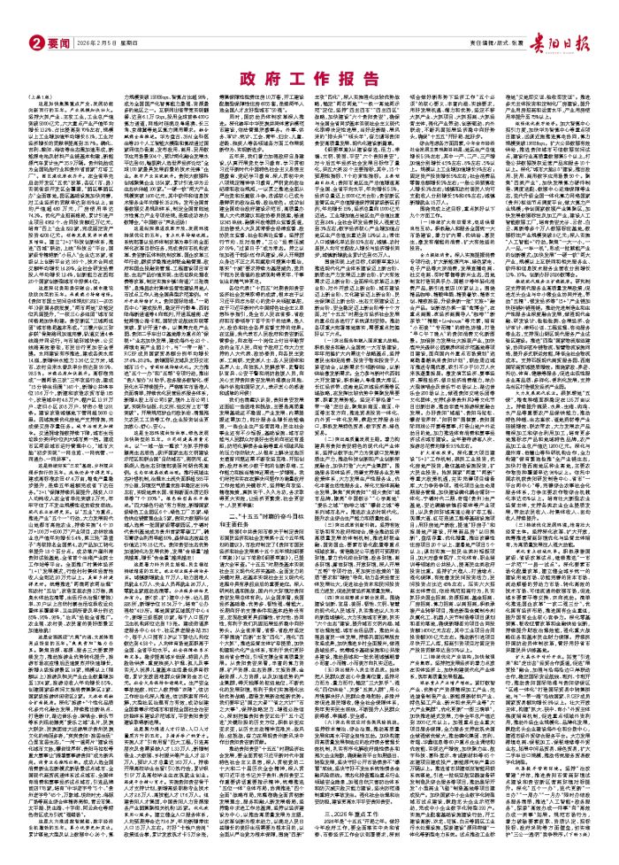 (《政 府 工 作 报 告》由贵阳日报为您提供,转载请注明来源,未经书面授权许可,不得转载或镜像。)