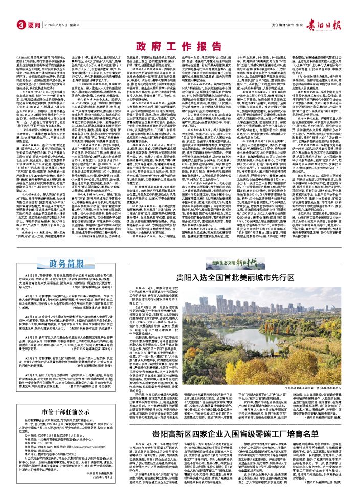 本报讯 近日,省工业和信息化厅公布2025年度贵州省零碳工厂培育名单,正式确定18家企业为2025年度全省零碳工厂培育对象。其中,贵阳高新区表现亮眼,共有4家企业成功入选,展现了该区在推动工