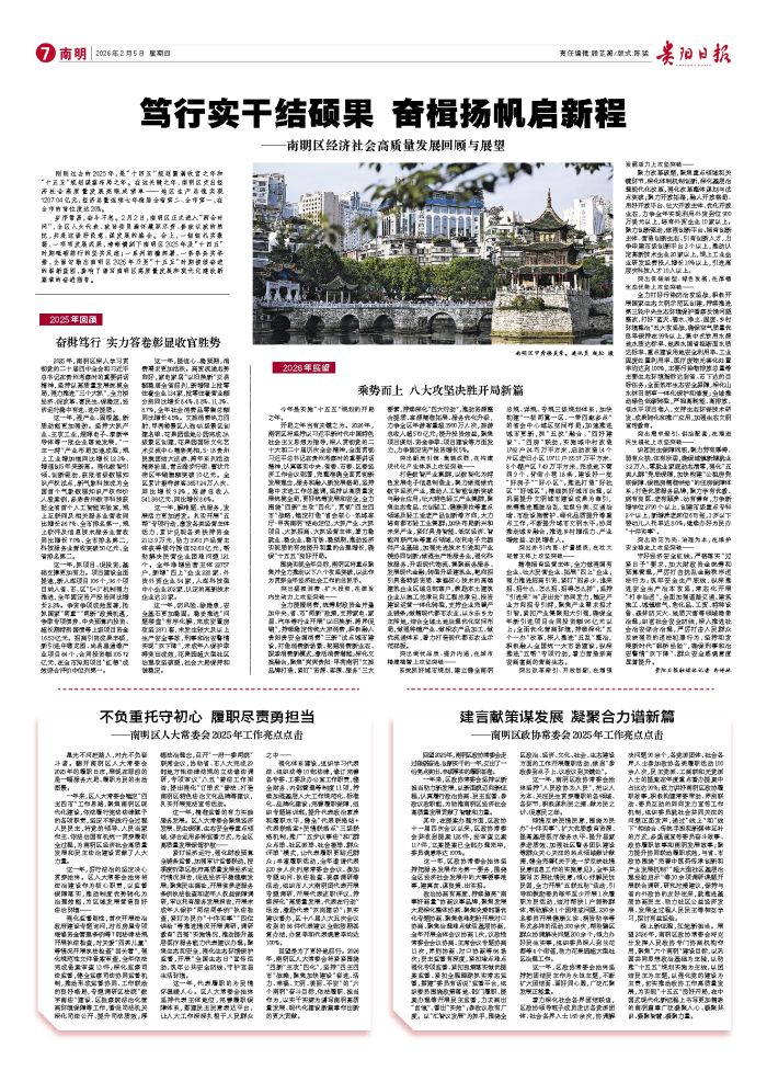 星光不问赶路人,时光不负奋斗者。翻开南明区人大常委会2025年的履职日志,展现在眼前的是一幅服务大局、履职为民的生动图景。 一年来,区人大常委会锚定“四主四市”工作思路,聚焦南明区现代化
