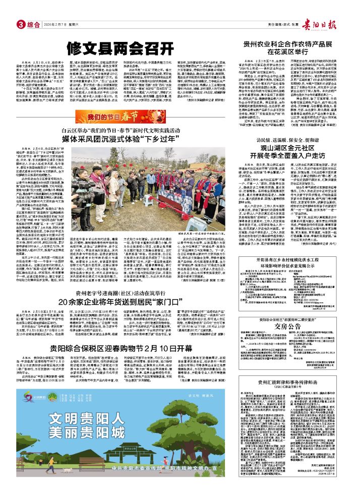 本报讯 2月3日至7日,由贵州省农科院与花溪区政府联合举办的“2026马上有成——贵州农业科企合作农特产品展”在花溪区举行。