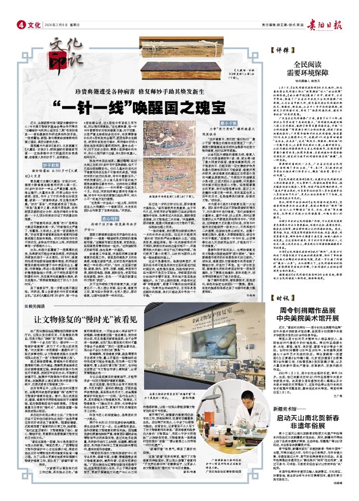 近日,由国家图书馆(国家古籍保护中心)与中国文物保护基金会等合作开展的“古籍保护与利用公益项目二期”传来好消息——借助最新的科研成果和科技手段,一批受霉蚀、断裂、絮化等复杂病害影响的国之瑰宝,