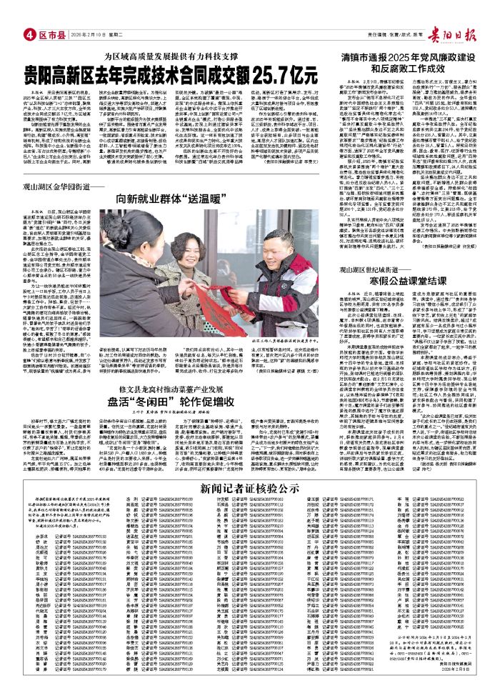 本报讯 来自贵阳高新区的消息,2025年全区深入贯彻“三抓”“园区五优”以及科技创新“3+3”总体部署,聚焦产业、科技、人才三大主攻方向,全年完成技术合同成交额25.7亿元,为区域高质量发展