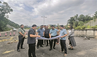 ◀2025年8月14日,乌当区人大常委会视察组对航天立交项目进行视察。