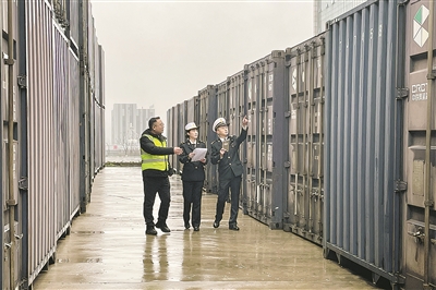 图为海关工作人员正在对集装箱货柜进行最后检查。