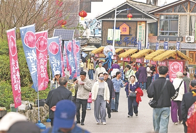在贵安新区高峰镇大狗场村,大年初六的“姑妈节”温情满满。当天,村里外嫁的“姑妈”们身着盛装,抬着糍粑、米酒回娘家,吸引了众多游客前来旅游体验。村里的农家乐老板忙得不亦乐乎:“今年春节客人多,一天接待二三十桌,光腊肉香肠就卖了两万多元。”