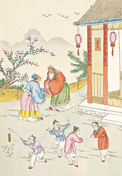 《年节习俗考全图》中的春节图。
