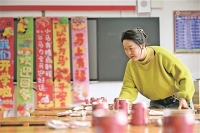 新学期开学临近,各地积极做好各项准备工作。 图为2月27日,老师在开阳县第一小学布置教室。 新华/传真