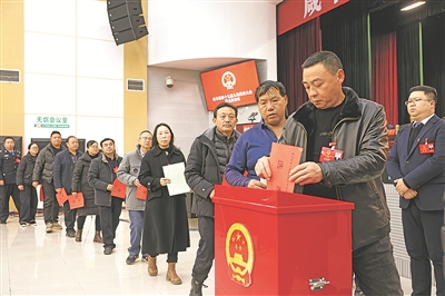 2025年12月27日,参加湖北省咸丰县第十九届人民代表大会第五次会议的代表对县人民政府提交的10件民生实事候选项目进行投票表决。