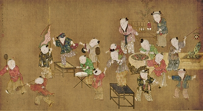 明朝风俗画《元宵婴戏图》。