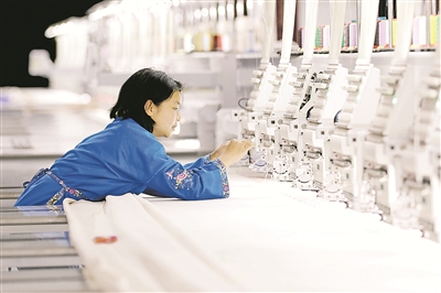 2026年2月24日,工人在贵州省黔东南苗族侗族自治州施秉县一家数字化苗绣企业生产车间赶制订单产品。