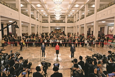 3月4日,全国政协十四届四次会议首场“委员通道”集体采访活动在北京人民大会堂举行。
