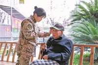 在第63个学雷锋纪念日到来之际,近日,武警贵州总队医院的医务人员携带医疗设备,到云岩区东山敬老院开展助老义诊活动。义诊现场,医务人员耐心询问老人的身体状况,提出合理的健康建议,提供脐灸、耳穴、