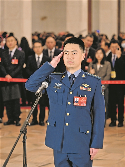 3月5日,第十四届全国人民代表大会第四次会议首场“代表通道”集中采访活动在北京人民大会堂举行。这是全国人大代表王文毅接受媒体采访。 新华/传真