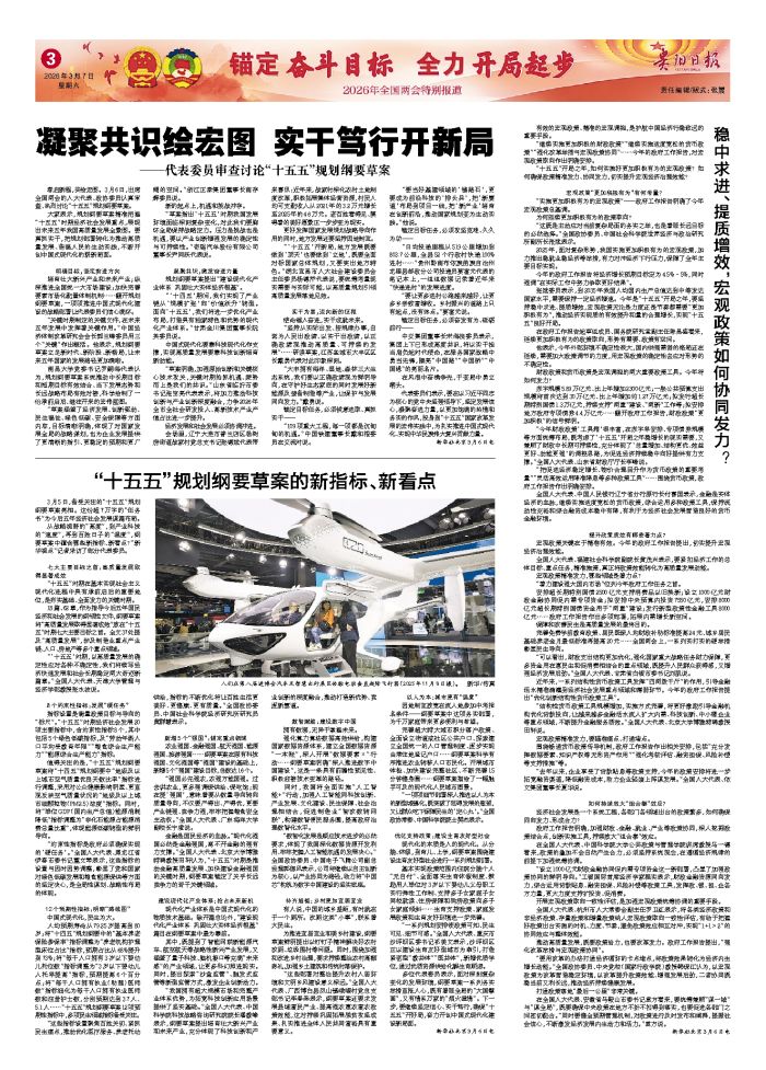 “草案涵盖了经济发展、创新驱动、民生福祉、绿色低碳、安全保障等方面内容,目标清晰明确,体现了对国家发展全局的战略谋划,也为企业发展提供了更清晰的指引、更稳定的预期和更广阔的空间。”浙江正泰集团董事长南存辉委员说。