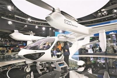 人们在第八届进博会汽车及智慧出行展区体验电动垂直起降飞行器(2025年11月8日摄)。 新华/传真