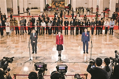 3月7日,全国政协十四届四次会议第二场“委员通道”集体采访活动在北京人民大会堂举行。 新华/传真
