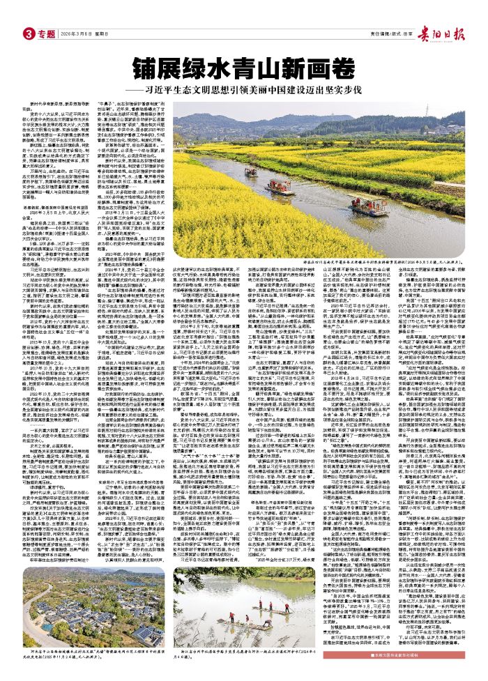 新时代孕育新思想,新思想指导新实践。 党的十八大以来,以习近平同志为核心的党中央把生态文明建设作为关系中华民族永续发展的根本大计,大力推动生态文明理论创新、实践创新、制度创新,创造性提出