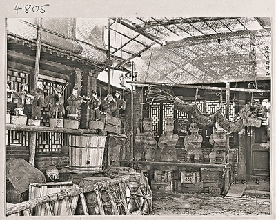 除了冰窖,什刹海附近、地安门一带的寺庙也善做冰灯。民国学者齐如山在其《北平杂记》中记述,从年前腊八开始,地安门外的寺庙“用一大筐绑上树枝及各种景致,再用水浇其上,冻成各种冰锥,俨如山景,其中楼宇、虫鸟、草虫等,很齐全别致。”