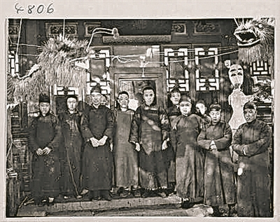 20世纪30年代,北京一家冰灯店铺及其工匠。