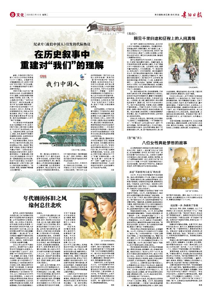 新春,大型纪录片《我们中国人》在总台央视纪录频道(CCTV-9)播出。正值新年返乡情绪最浓郁之时,纪录片中探讨的“何为中国人”的文化命题,在一年最重要的传统节日里引发跨代际热议。 《我们