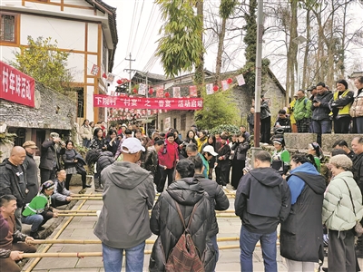 游客兴致勃勃地参加“春宴”民俗活动。