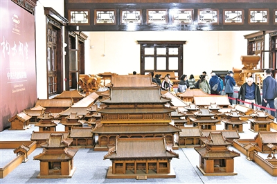 经整体修缮保护,位于济南市上新街的山东古建筑博物馆近日向公众开放。山东古建筑博物馆依托万字会旧址济南母院设立,是山东省首座收藏、研究、展示中国传统建筑构件、技艺及发展历史的专题性博物馆。万字会旧址济南母院始建于1934年,建筑群由四进院落构成,是全国重点文物保护单位。图为人们在山东古建筑博物馆参观中国古代建筑模型展。 新华/传真