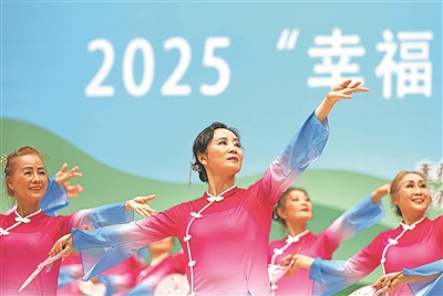 2025年6月23日,在重庆市南岸区江南体育馆内,海棠溪街道代表队在2025“幸福南岸”重庆市南岸区第十九届广场舞展演活动上表演节目。