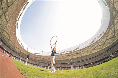 2025年9月9日,北京第二实验小学教育集团第三届体育节暨北京市2025年中小学“学练赛一体化”体育教学改革阶段性成果展示在国家体育场“鸟巢”举行。这是学生们参加素质操展演。