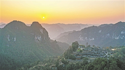 这是2025年1月1日在湖南省花垣县十八洞村拍摄的日出景象(无人机照片)。