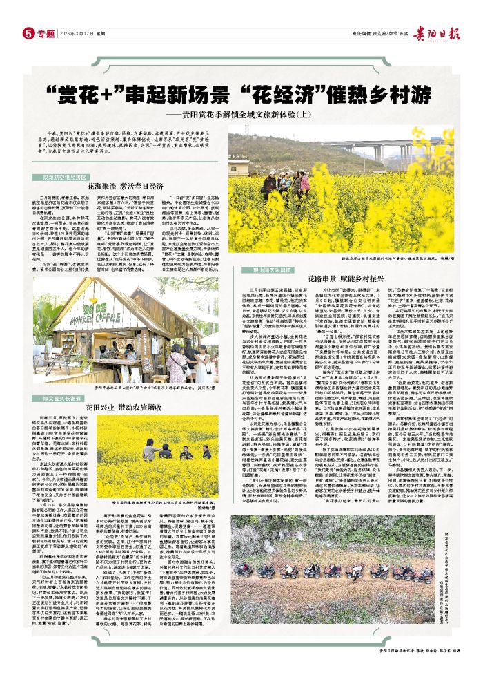今春,贵阳以“赏花+”模式串联市集、民宿、农事体验、非遗展演、户外徒步等多元业态,通过精品线路打造、特色活动策划、服务保障优化,让游客从“观光客”变“体验官”,让传统赏花游更有内涵、更具趣味、