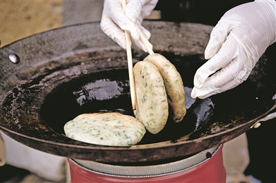 右二樱花园内,农户售卖的现烙清明粑。 许发顺 摄