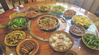 乌当区新堡布依族乡王岗村庖汤主题农家乐的庖汤宴。黎荣 摄