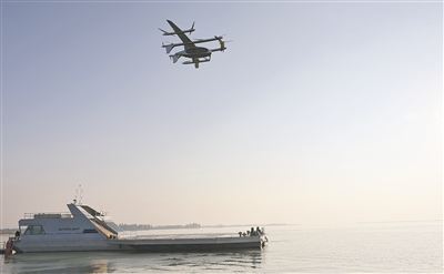 ▲2025年11月22日,一架电动垂直起降飞行器从零碳水上机场起飞。当日,峰飞航空自主研发的eVTOL零碳水上机场,在江苏昆山的峰飞航空全球科技日活动中正式亮相,由“零碳水上机场”与“eVTOL航空器”协同组成的“海空一体”低空经济解决方案正式发布。