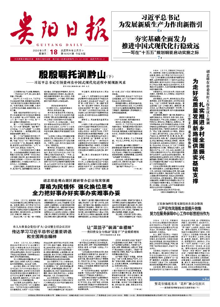 贵州日报天眼新闻记者 李坤 汪月 三月的黔贵大地,千山含碧,春意盎然。 一年前的这个时节,黔山贵水惠风和畅、万物生辉。 2025年3月17日至18日,习近平总书记亲临贵州考察